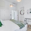 There are three bedrooms in the house. The master bedroom has a double bed, bedroom number two has a double and the third bedroom has two single beds. All the bedrooms are spacious with colorful and stylish touches. There is also plenty of storage space for guests to store all their belongings.
