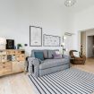 The living area is bright and contemporary with a large and comfy sofa that can be converted in a double bed and a large LED TV.
