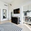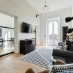 The apartment has a really sleek and modern look, every room has a particular style and reflects the designer multifaceted talent.